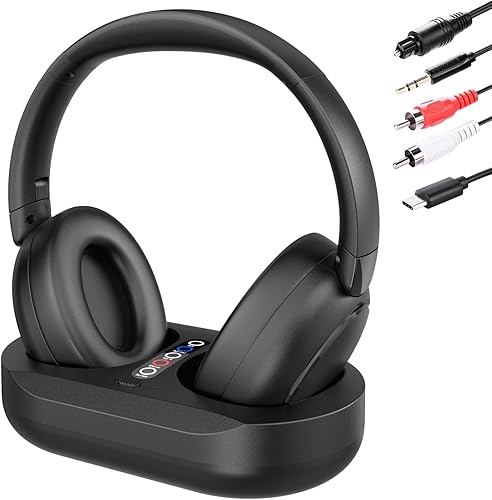 eppfun Wireless Headphones for TV Watching, LED Display Transmitter Charging Base, Bluetooth 5.3/2.4G Dual Mode, No Lip-Sync Delay, Plug and Play, 100feet Long Range Gifts for Elderly.