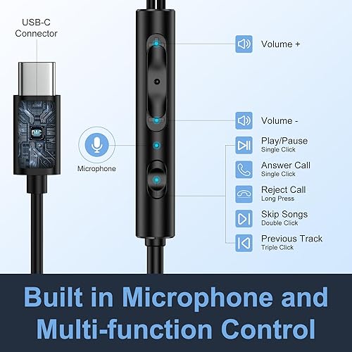 iPhone 16e USB Type C Wired Headphone for iPhone 16/16 Plus/15,Samsung S25 Edge Ultra Earbuds with Microphone & Volume Control HiFi Stereo Type C Earphones for Galaxy M16/S24/S23,Google Pixel 9a/9/8/7