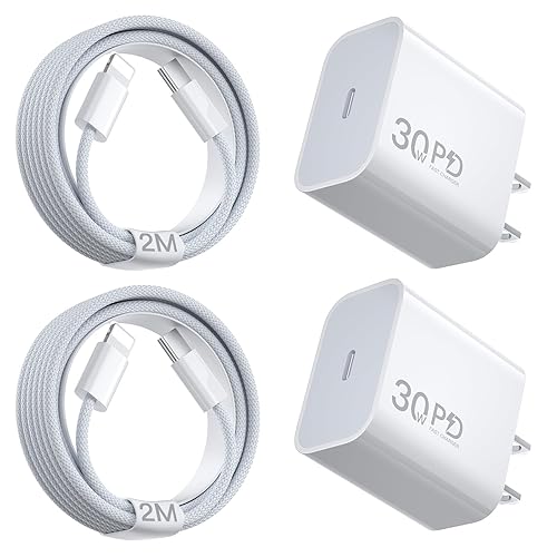 30W i Phone 14 13 12 11 Charger 2+2Pack, 6.6FT Long Fast Charging Lightning Cable with 30Watt USB C iPhone Charger Type C Wall Charger Block for iPhone 14/14 Pro Max/13/12/11/XS/Max/XR/X/SE
