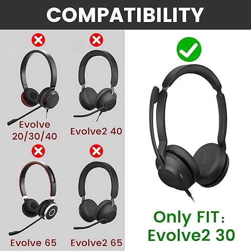 Replacement Ear Pads for Jabra Evolve2 30 Headset – Earpads Cushions Featuring Softer Protein Leather and High-Density Foam