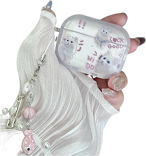 for AirPods Pro 2 Case Cute,Woman Boys Exquisite Kawaii Cat Bread Bow Cartoon Pattern Design,Creative Strawberry Earphone Protective Cover (cat)