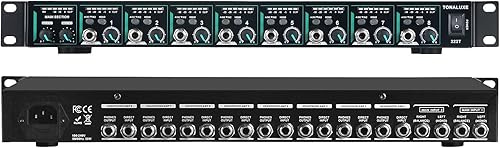 8-Channel Headphone Mixing Distribution Amplifier, Mountable High-Power Headphone Splitter Amp with Mono/Stereo Modes, 16 Headphone Outs, LED Meters for Studio & Live Sound Monitoring
