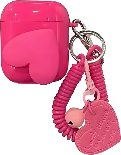 Compatible for AirPods 4 Case, Cute 3D Love Heart AirPods 4th Generation Protective Case with Love Keychain for Girls Women, Shockproof Headset Cover for Airpods 4th Gen Rose Pink
