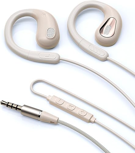 USB C Wired Open Ear Headphones with Ear Hooks Running Headphones with Mic & in-Line Control Air Conduction Wired Stereo Headset for Sports Cycling Jogging Exercise Gym (Beige)