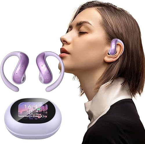 Yunseity Clip on Earbuds, Open Ear Wireless Bluetooth 5.49 Earbuds with Color Touchscreen, HiFi Stereo Noise Cancelling Headphones with Charging Case for Sports Workout Travel (Black)