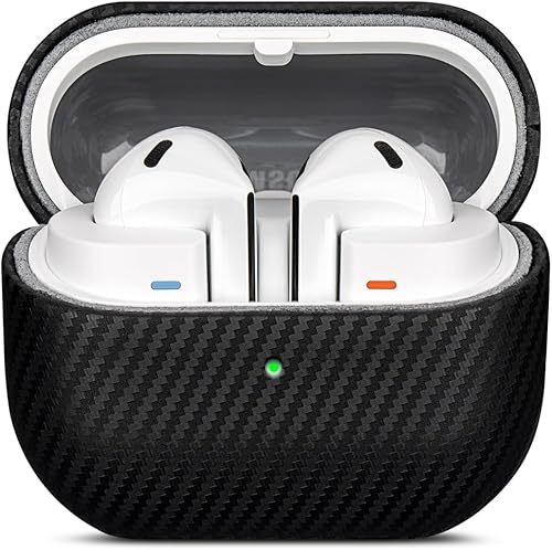 Leather Case - for Samsung Galaxy Buds 3 Pro/Galaxy Buds 3 Case Cover - Selected Skin-Friendly Leather, Carbon Fibre Texture, Handmade Shockproof Hard Cover for Samsung Buds Pro 3 - Blue