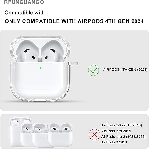 RFUNGUANGO for AirPods 4 Protective Case, Soft TPU Airpods 4th Generation Protective Case, Transparent with Cleaning Kit, with Keychain, for Apple AirPods 4 Gen, Unisex - Transparent