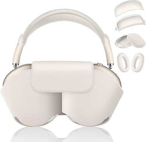 3 in 1 Silicone Case Cover for AirPods Max Headphones, Anti-Scratch Ear Pad/Ear Cups/Headband for AirPod Max, Accessories Silicone Protector for Apple AirPods Max (Light Pink)