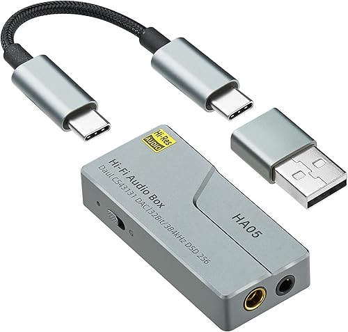 Upgraded HA05 Portable USB C DAC Headphone Amplifier, HiFi 32Bit/384kHz DSD256 Dual CS43131 Decoder Mini DAC Amp Dongle, 3.5mm/4.4mm Balanced Outputs, Audio Adapter for Phones/PC/Laptops/Tablets