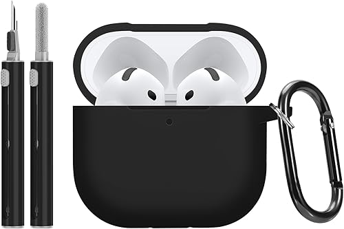 for AirPods 4 Case with Cleaning Kit and Keychain, Cute Skin Soft Silicone Solid Color Protective for Women Girls Men Anti-Yellowing Scratch Resistant Shockproof Cover for AirPods 4-White