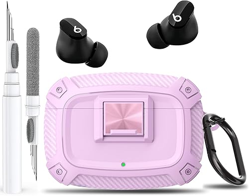for Beats Studio Buds/Bud + Case Cover with Lock Clip 2021/2023, Rugged Shockproof Protective Hard Skin with Carabiner&Cleaner Pen Men Women for Beat Studio Buds/Bud Plus Earbuds - Pink