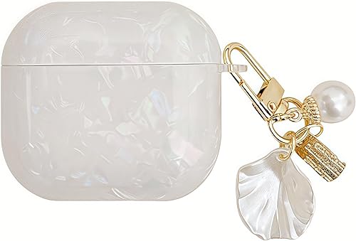for Cute Glitter Airpod 4 Case - Bling Shell Pattern Design Soft TPU Protective Cover with Shell Pearl Keychain Compatible with Airpods 4th Generation 2024 Released, Black