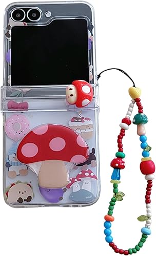 for Samsung Galaxy Z Flip 7 Case Cute,Exquisite Creative Tomato/Mushroom Pattern Design,Kawaii Clear Cartoon Animals Phone Cover with Bracelet for Girls Woman (Setas)