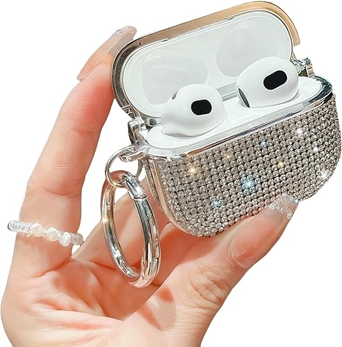 SGVAHY for AirPods Pro 2 Case with Keychain Glitter Diamond Silver Rhinestone Crystal Design Cute Luxury Cover for Women Girls Anti-Fall Shockproof Protective Case for AirPods Pro 2nd 1st Generation