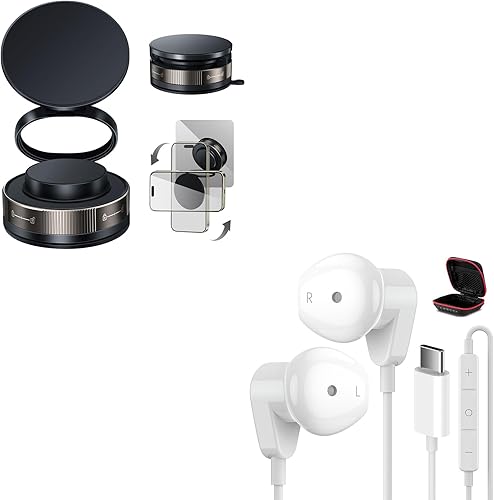 USB C Headphones HiFi Stereo USB-C Wired Earbuds White + 360° Vacuum Adsorption Magnetic Bracket, Compatible with iPhone 16 Pro/15 Pro, Galaxy S25/S24/S23/S22, Pixel 9/8/7/6