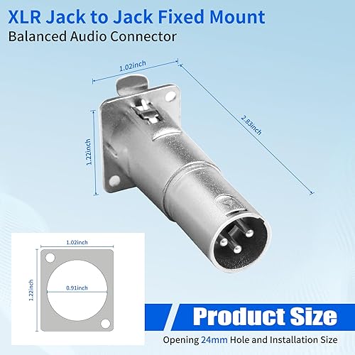 (4PCS) XLR Connector Adapter [New Version 2025] D Type XLR Female Panel Mount to Male Connector D Type Connector Pass Through Solderless Connectors 3 Pin for Audio Equipment With Screws Set
