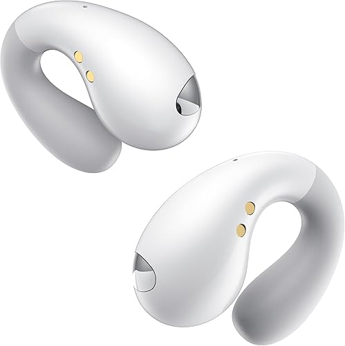 Open Ear Earbuds Wireless Bluetooth 5.3 Earphones, Flexible Clip On Ear buds with 36H Playtime LED Display Bone Conduction Headphones, Waterproof Light Weight Fit for Every Ear, Sport Frosted White