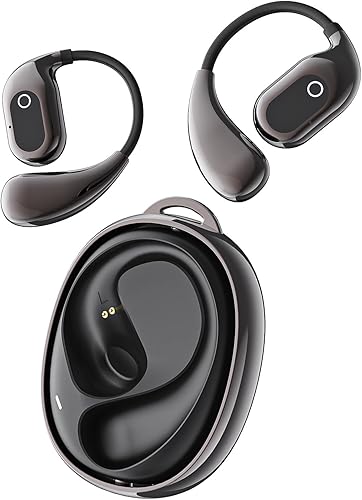 Open Ear Bone Conduction Headphones Clip-on Headphones,Wireless Earbuds Bluetooth 5.3 with LED Display Charging Case 60 Hours Playtime IPX7 Waterproof for Running Walking, Workout 1