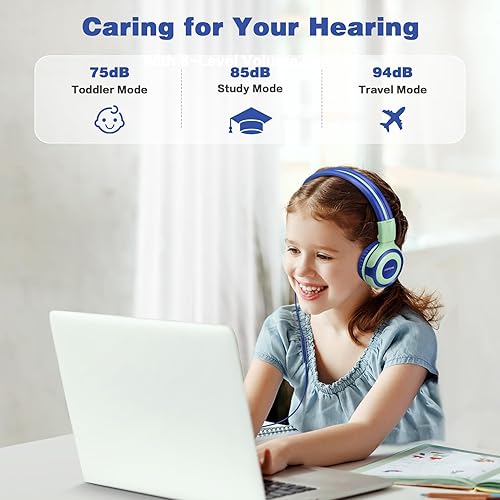 SIMOLIO Kids Headphones Wired & Bluetooth Bundles, Safe Volume, HD Mic Stereo Sound, Adjustable Headband, Foldable Durable Children Headsets for Travel School