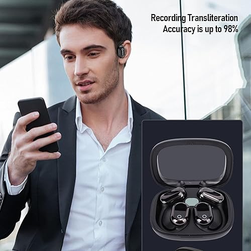 AI Translation Earbuds Real Time, Translator Earbuds 140 Languages and Accents, Open Ear Headphones Translator Touch Control Ear Hook for Travel Business Learning (Black)