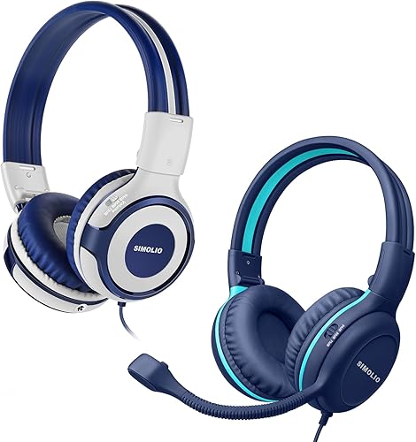 SIMOLIO Kids Headphones Wired for School-Gaming with Microphone, Safe Volume Cord Headphone with Mic for Boys, Teens, Children, Lightweight Folding Over Ear Headset for PC, iPad