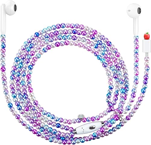 for iPhone Headphones Wired Beads Earphones Earbud with Microphone in Ear Wired Ear Buds Headsets Compatible with iPhone 14/13/12/11/XR/XS/8/7/SE/Pro Max/Support All iOS System Colorful
