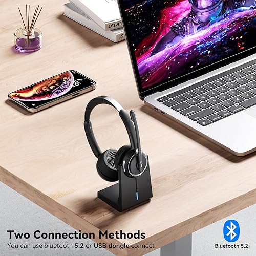 Wireless Headset with Mic for Work, Bluetooth Headset with Mic (AI Noise Canceling & Mic Mute), Wireless Headphones with USB Dongle & Charging Base for Work/Home/Call Center/PC/Computer/Zoom/Teams