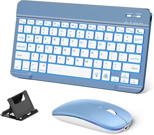 Hamile Bluetooth Keyboard and Mouse for iPad - Rechargeable Wireless Keyboard for iPad 11th/10th/9th Gen, Pro/Air/Mini, iPhone, Ultra-Slim Tablet Keyboard and Mouse with 7-Color Backlit, Black