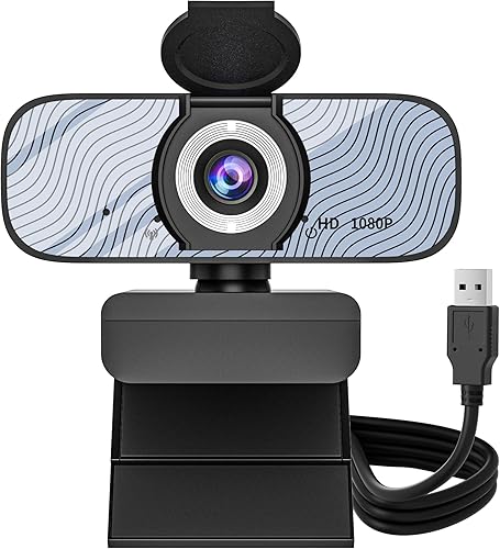 USB HD Webcam with Built-in Microphone and Rotatable Tripod, 1080P Video, Wide Angle Camera, Privacy Cover, for Desktop PC or Laptop Computer - 3(Black)