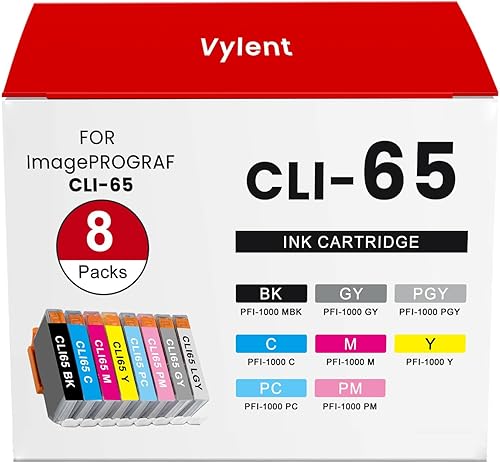 CLI-65 Ink Cartridges 8-Color Pack (BK, C, M, Y, PM, PC, GY, LGY) CLI65 CLI 65 Replacement for Canon CLI-65 Ink Cartridge for PIXMA PRO-200 Printer
