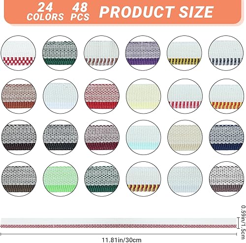 48 Pcs Book Binding Headbands Endbands,Cotton Book Headband Binding Kit,Book Decor Ribbon for Bookbinding Ri-bbon(11.8 Inches Long,0.5 Inches Wide,24 Colors)