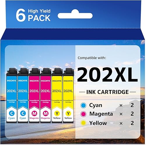 Remanufactured Ink Cartridges for Epson 202XL Multipack for 202 XL Ink Cartridges for Epson Printer WF-2860 XP-5100 (6 Pack,2 Cyan 2 Magenta 2 Yellow)