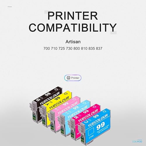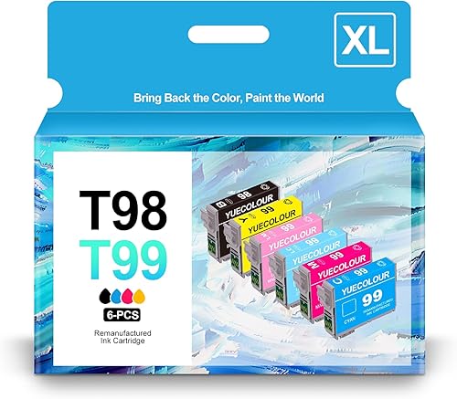 98 99 Ink Cartridge Replacement for T98 T99 T098 T099 98 99 use with Artisan 700 710 725 730 800 810 835 837 Printer (6-Pack, BK/C/M/Y/LC/LM)