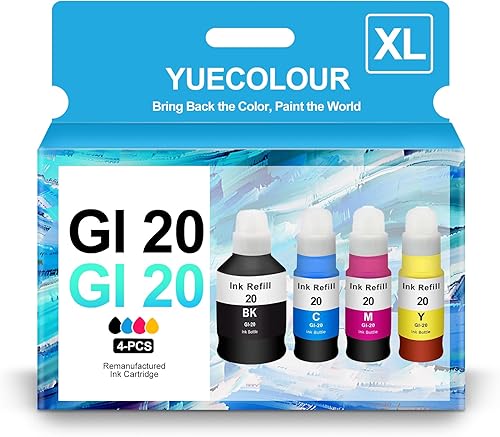 GI-20 Ink Refill Bottles Replacement for Canon gi-20 GI20 Ink Bottles Refills Kit Work with PIXMA G6020 G7020 G5020 6020 7020 5020 MegaTank Printers (Black Cyan Magenta Yellow)
