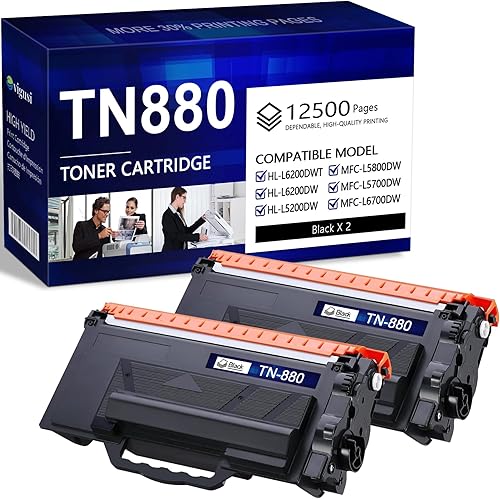 TN880 Super High Yield Toner Cartridge Black Replacement for Brother TN-880 TN 880 Toner HL-L6200DWT L5200DW L5100DN MFC-L5800DW L5700DW L6700DW L6800DW Printer Up to 12,500 Pages 2-Pack