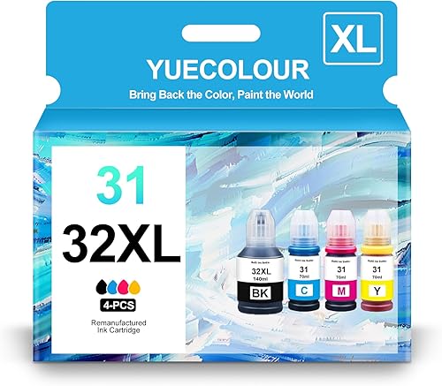 31 32 Refill Ink Bottle Replacement for HP HGT-32XL HGT-31XL H-31 H-32 Ink Bottle Use with HP Smart Tank 5000 7301 6001 7602 5102 7001 Plus 551 651 Printers (1 Black,1 Cyan,1 Magenta,1 Yellow)