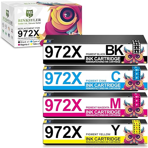 4-Pack 972a BK/C/M/Y Ink Cartridges Work for HP Widepage Pro MFP 477dw 577dw 377dw 352dw 452dw 552dw Printer