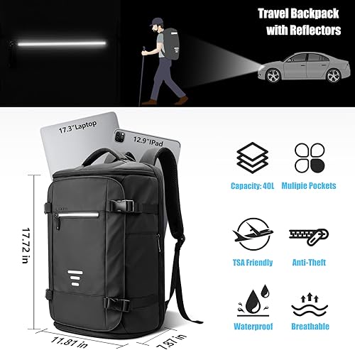 Travel Backpack for Men Women Large Lightweight Carry-on Laptop Backpack 40L Flight Approved Business Rucksack Water-Resistant Backpack Fits 17.3 inch Laptop for College Work Travel with a Small Bag