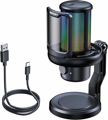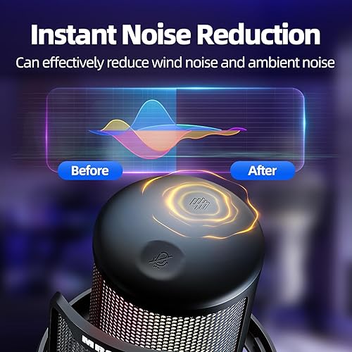 Gaming Microphone, USB Noise Cancellation Condenser Mic with Headphone Jack, Mute, Gain, RGB, Suitable for PC, Computer, PS4, PS5, Mac, Streaming, Podcasting, Recording, YouTube, Discord