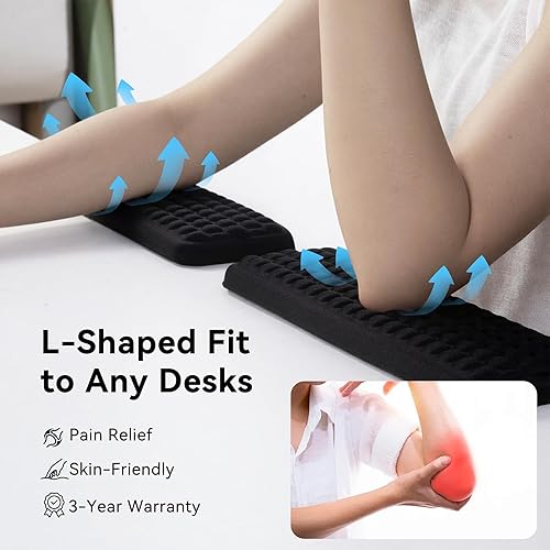 Desk Edge Cushion & Keyboard Wrist Rest - 2-Piece Ergonomic Memory Foam Arm Rest for Desk, Non-Slip Elbow Pads and Forearm Support (11.8 x 3.9 Inch)
