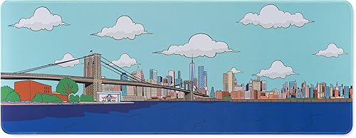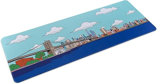 New York City Seaside Mouse Pad with Brooklyn Bridge and Jane's Carousel | Non-Slip Desk Mat with Stitched Edge | Smooth Surface for Home, Office, or Dorm