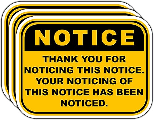 (3Pcs) Thank You for Noticing This Notice Sticker Funny Notice Sarcastic Stickers Humorous Decorate Waterproof Vinyl Decal for Car Laptop Water Bottle Tumbler Phone Case Notebook Size 3x2.3 Inches