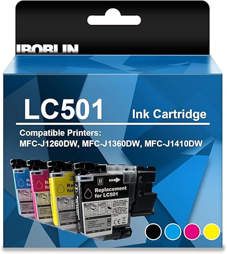LC501 Ink Cartridges Compatible for Brother LC501 Ink Cartridges Standard Yield for MFC-J1260DW, MFC-J1360DW, MFC-J1410DW (4Packs,Black, Cyan, Magenta, Yellow,with Chip)