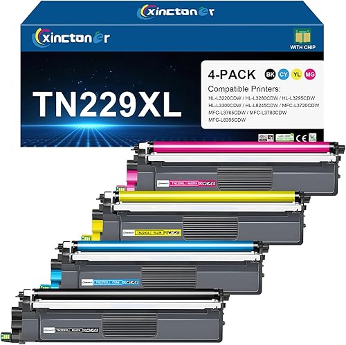 TN229XL 229XL Toner Cartridges 4 Pack Compatible for Brother TN229XL TN229 Toner Use for HL-L3220CDW HL-L3280CDW MFC-L3720CDW HL-L3300CDW HL-L3295CDW Printer (4 Pack, Black Cyan Magenta Yellow)