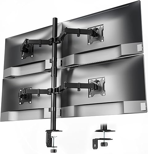 monTEK Quad Monitor Stand Mount, Fully Adjustable Desk Mount for 4 Screen up to 17”-32” and 22lbs Capacity Each Arm, Stable Monitor Arm with C Clamp and Grommet Base, VESA 75x75mm/100x100mm