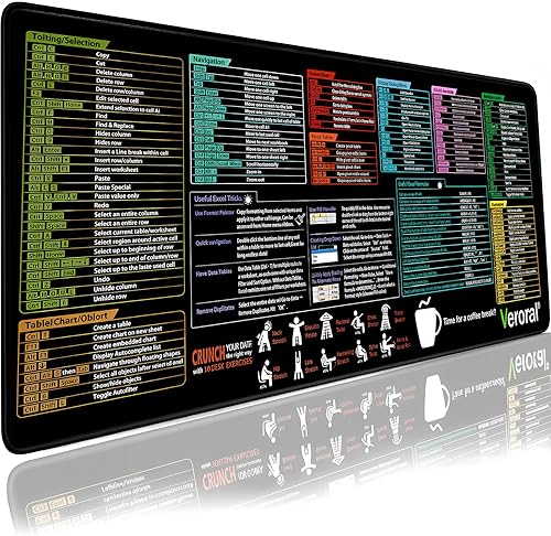 Excel Shortcut Keys Mouse Pad, Extended Large Cheat Sheet Desk Mat with Non-Slip Rubber Base for Office, Spreadsheet, PC Users(31.5x11.8'')