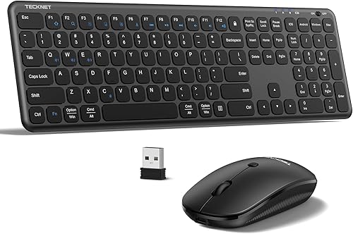 TECKNET Wireless Keyboard and Mouse Combo, Bluetooth Keyboard and Mouse (2.4G USB + Dual BT), Rechargeable Wireless Keyboard Mouse, Full Size Quiet Keyboard and Mouse for Windows, Mac, Laptop, PC