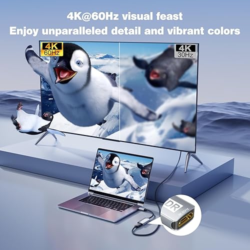 USB C to HDMI Adapter (4K 60Hz), USB Type C to HDMI Cable Adapter [Thunderbolt 3/4/5 High Speeds] Converter Compatible with iPhone 15/16, MacBook Pro/Air, iPad, Galaxy S24/S23