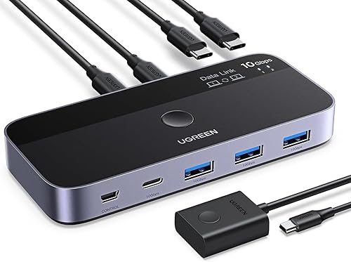 UGREEN 10 Gbps USB-C Switch Support File Sync & Cross-Screen Drag, USBC 3.2 Switch 2 Computers Share 4 USB 3.2 Gen 2 Ports, USB Switcher Selector Sharing Keyboard and Mouse with Controller