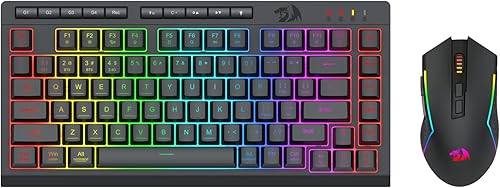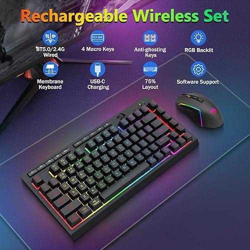Redragon Wireless Gaming Keyboard and Mouse Combo, Bluetooth/2.4G/USB-C Wired, RGB Backlit, 75% Portable Quiet Rechargeable Membrane Macro Keyboard & 12800 DPI Mouse with Software for Win/MAC
